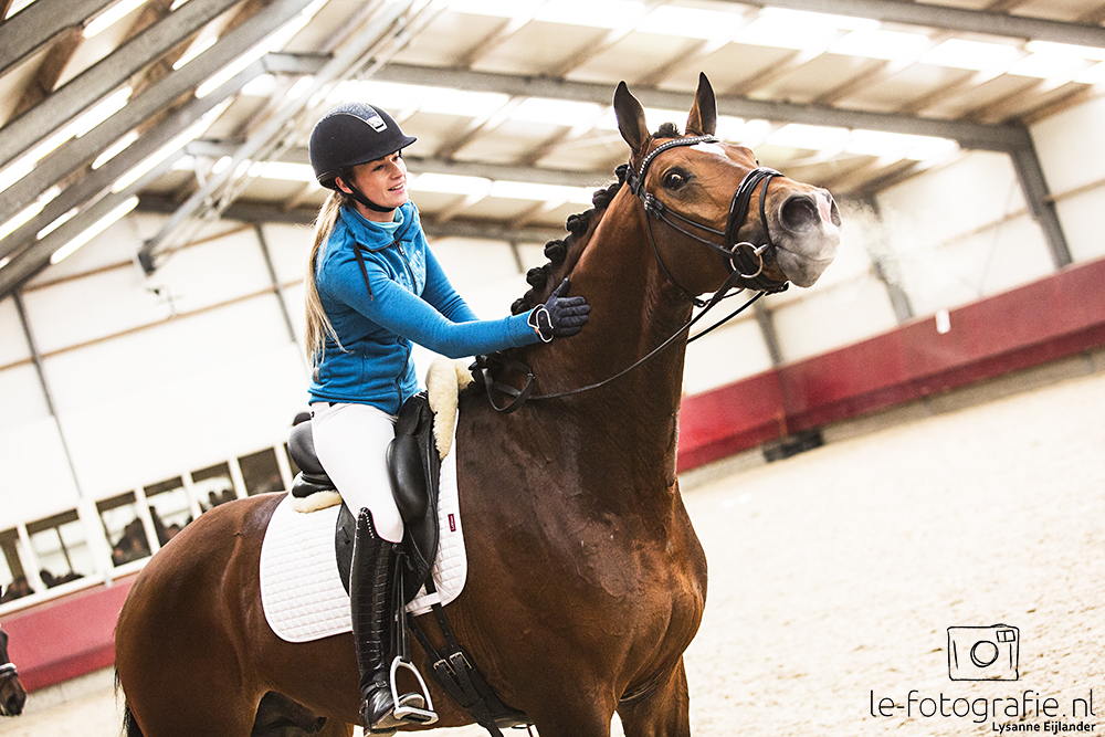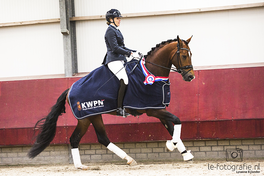 Hummer (Charmeur x Daddy Cool, fok. J. Duivenvoorde) van familie Schalenkamp werd voorgesteld door Emma Laarkamp. De ruin viel op met zijn achterbeengebruik. “Een heel fijn paard met veel souplesse, die nog iets meer balans mocht hebben. Hij heeft veel bereidheid om te werken en reageert fijn aan de hulpen.”