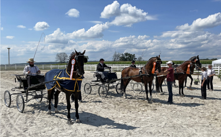 Op beide dagen werden er voor merries Fine Harness Cups verreden.In de aangespannen rubrieken zijn, net als bij de IBOP, punten voor het Sportpredicaat te behalen en dat zorgt voor een extra stimulans. Het is altijd prachtig om de sfeer en het enthousiasme van de rijders en het aanwezige publiek mee te maken. Op de eerste dag deden vier merries mee. Het was de scherpe en actievolle tuigtypische Keurmerrie Jemarine (Ditisem x Ballerina Keur Pref. Sport van Vaandrager) gefokt bij J.T. Seinen uit Punthorst en in eigendom van Rocky Ridge Stables uit Narvon (PA) die de winst behaalde en hiermee ook als eerste merrie in Amerika het Sportpredicaat verdiende. De winst werd haar zeker niet cadeau gegeven want ze versloeg pas na het overrijden de eerder genoemde Keurmerrie Kiralonda. Op de tweede dag traden dezelfde vier merries wederom aan en werd er van ‘stuivertje’ gewisseld. Tijdens het overrijden wist de sterke tuigtypische en temperamentvolle Kiralonda de winst te pakken en werd Jemarina als tweede opgesteld. Vergeleken met de eerste wedstrijd was het tempo van Kiralonda nu wat langzamer waardoor haar talent nog beter uit de verf kwam. Beide merries behaalden door hun goede prestaties een mooi aantal punten voor het Sportpredicaat.