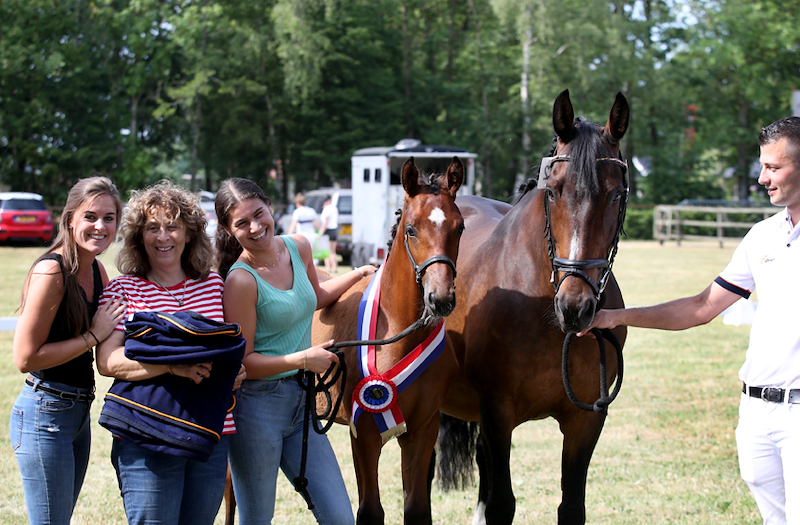 Het hengstveulen T2 To Tango van My Blue Hors Santiano (uit Ammaretto ster uit Havidoff) gefokt door M.E. Gelling uit Dedemsvaart, werd kampioen bij de dressuurveulens. “Het veulen van 1 maart 2023 is royaal ontwikkeld en heeft veel lengte in het lichaam. Daarbij heeft het veulen een mooi front. In de draf heeft het veulen veel lichaamsgebruik en loopt mooi bergop”, licht de jury toe. Naast het kampioenslint is de zoon van My Blue Hors Santiano ook uitgenodigd voor de nationale veulenkeuring in augustus.