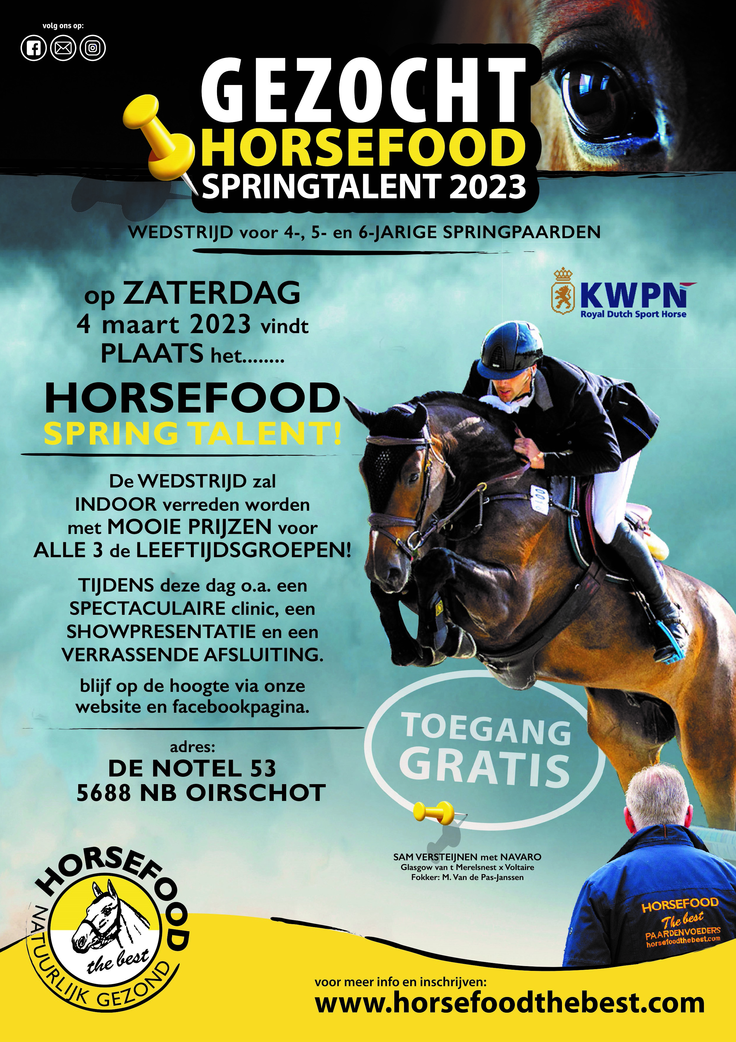 Schrijf je nog in voor de horsefood spring talent wedstrijd in Oirschot 4 maart.