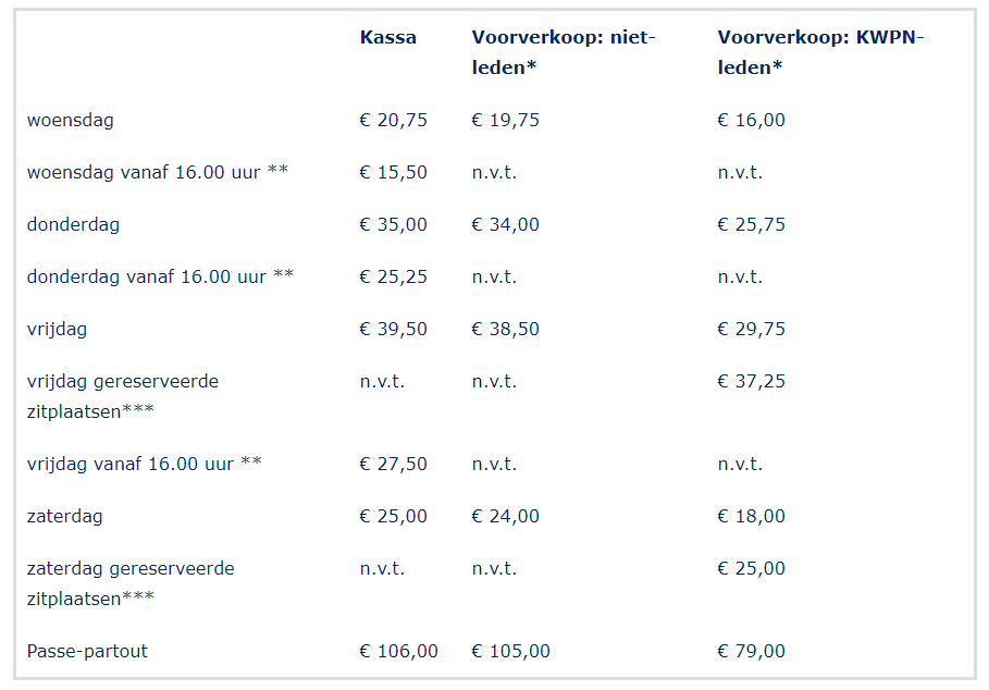 Ticketprijzen