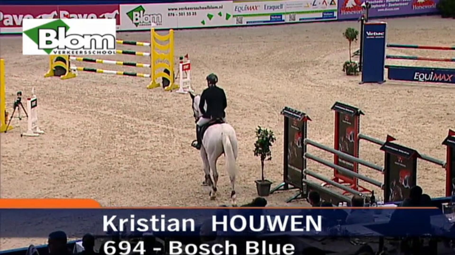Bosch Blue is een eerlijke en betrouwbare, iets sensibele hengst die in het parcours snel spanning opbouwt. De hengst heeft ruim voldoende instelling, ruim voldoende bereidheid tot werken en laat zich voldoende bewerken. De stap is ruim voldoende van ruimte. De draf is ruim voldoende tot goed van ruimte. De galop is lichtvoetig en goed van ruimte. De hengst heeft een goede houding en een goede balans. Bosch Blue springt met goede reflexen, een ruim voldoende techniek, maar zou meer lichaamsgebruik moeten hebben. Bosch Blue lijkt voorzichtig en toont ruim voldoende tot veel vermogen. Als springpaard heeft Bosch Blue ruim voldoende tot veel aanleg en geeft zijn ruiter een ruim voldoende gevoel.