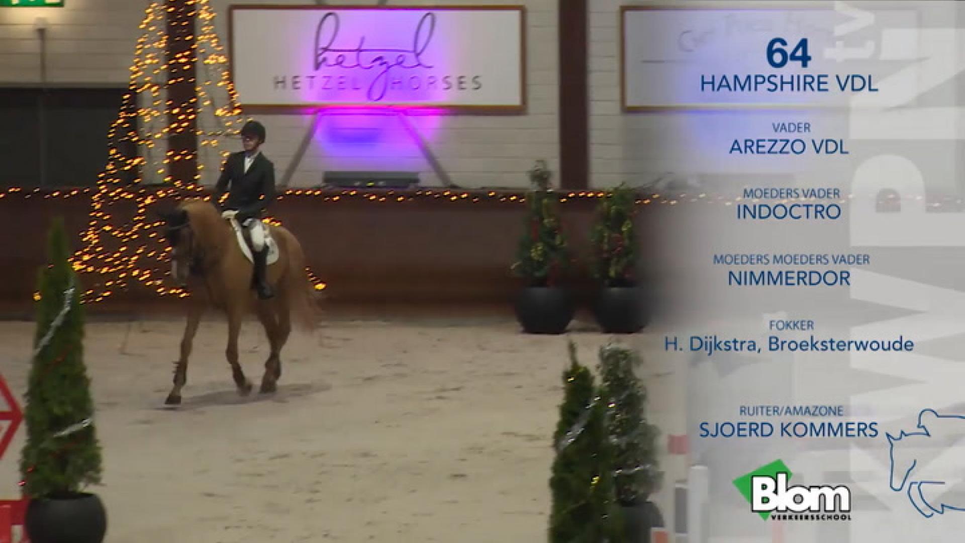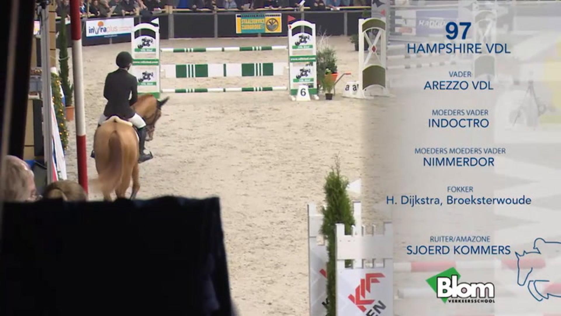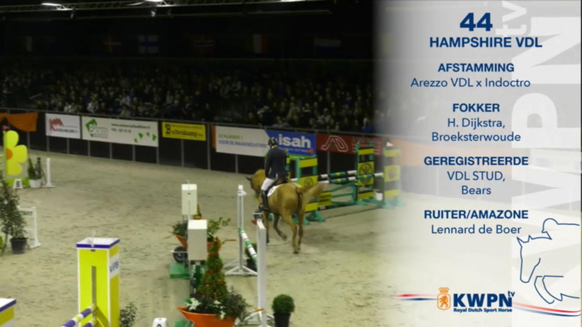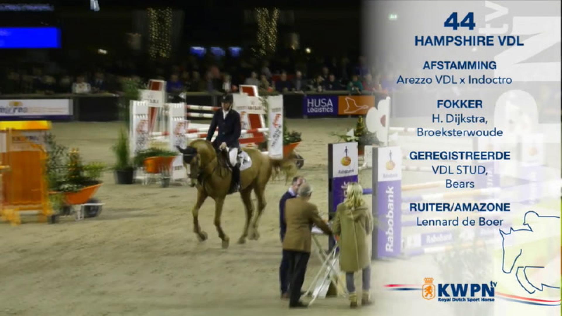 Hamshire VDL was derde in de kampioenskeuring en is de eerste goedgekeurde zoon van de Grand Prix hengst Arezzo VDL. De hengst komt uit een predikaatrijke en vruchtbare moederlijn met noordelijke sportpaardenverervers als Indoctro, Nimmerdor, Notaris, Le Val Blanc xx en de te vroeg gestorven Polaris op rij. Er komen diverse succesvolle sportpaarden uit deze stam. Zijn moeder, Rilexy is een NMK-merrie die 80,5 punten behaalde in haar test. Haar halfzus, Well Born Rilexy (sportnaam Amadora v.Chin Chin), is met Beezie Madden succesvol in de springsport.