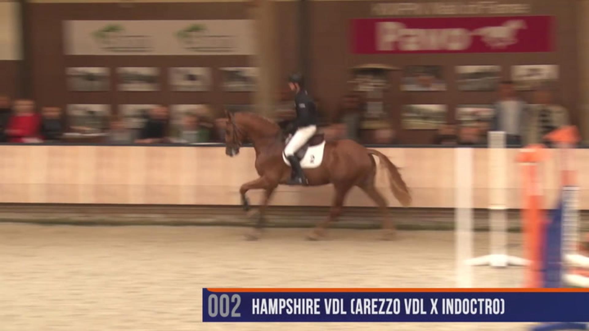 Hampshire VDL toonde een collectie goed ontwikkelde, aansprekende springveulens. De hoofden zijn sprekend. De halzen zijn goed gevormd met veel bespiering. De rug is soms iets kort en enkele keren gezonken. De stap is correct en ruim voldoende tot goed van ruimte. De draf heeft een ruim voldoende tot goede afdruk, ruimte en balans met veel souplesse. De veulens galopperen met een ruim voldoende tot goede ruimte, afdruk, souplesse en balans.