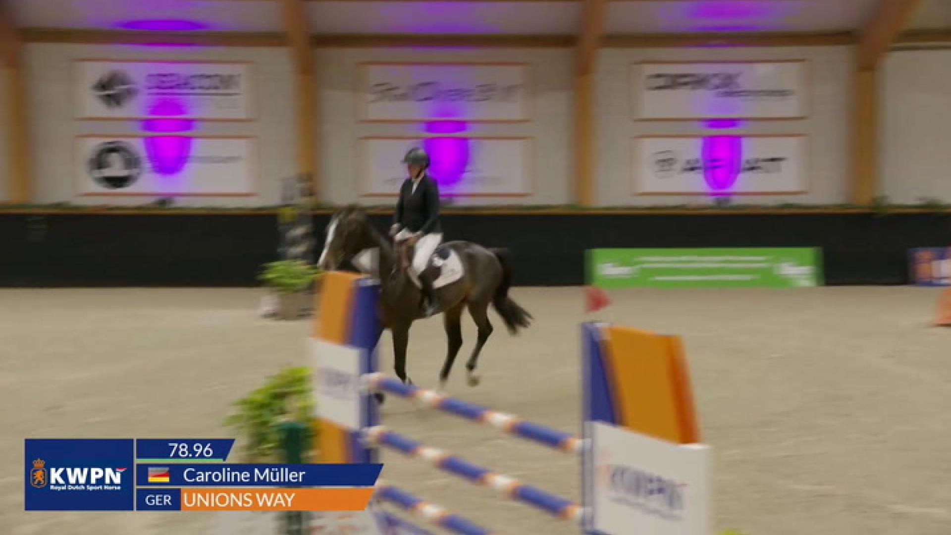 De galop is krachtig, ruim voldoende van ruimte en souplesse en wordt eveneens met een goede houding getoond.