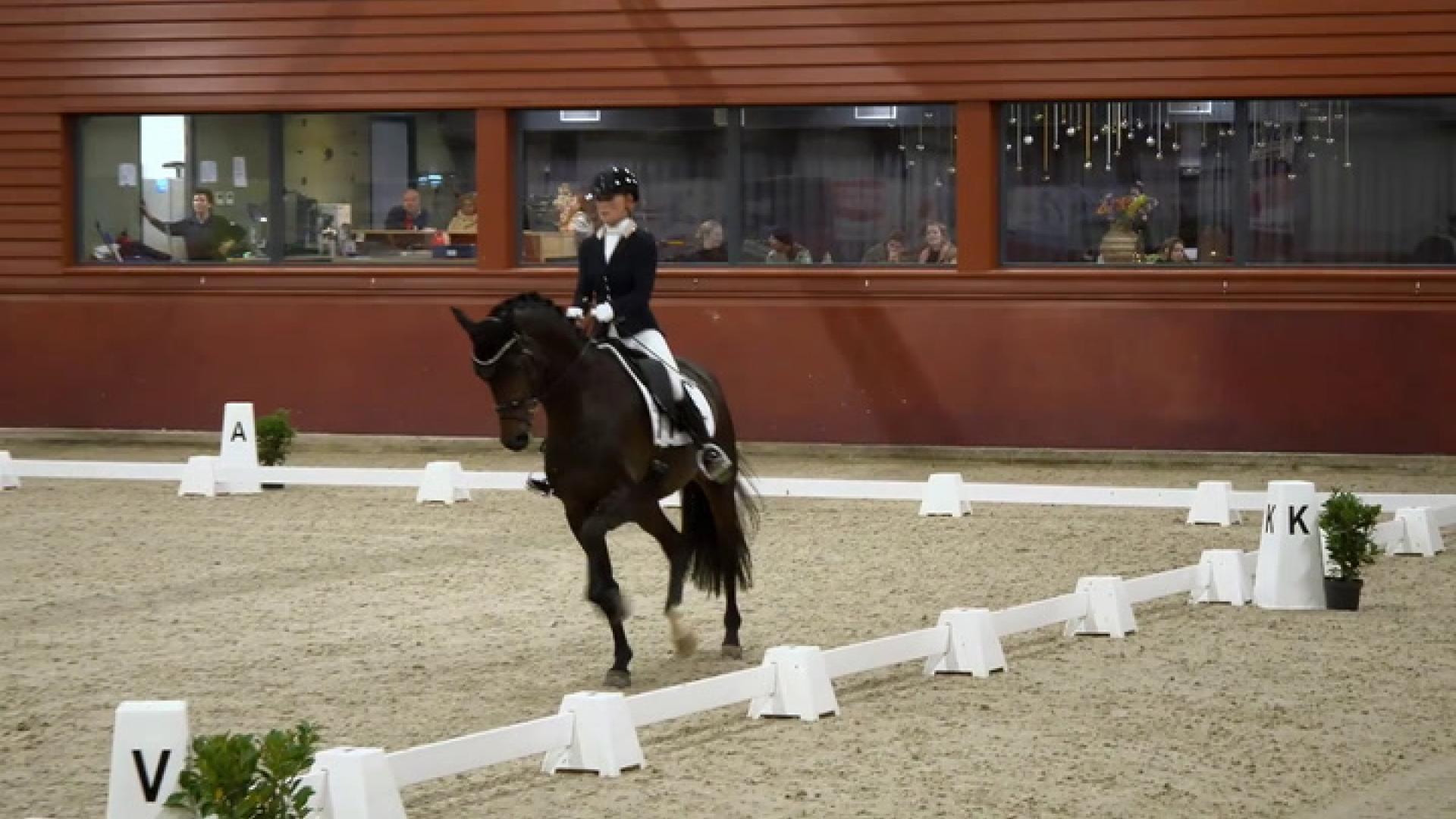 De galop is krachtig, goed van ruimte met een goede houding en balans.