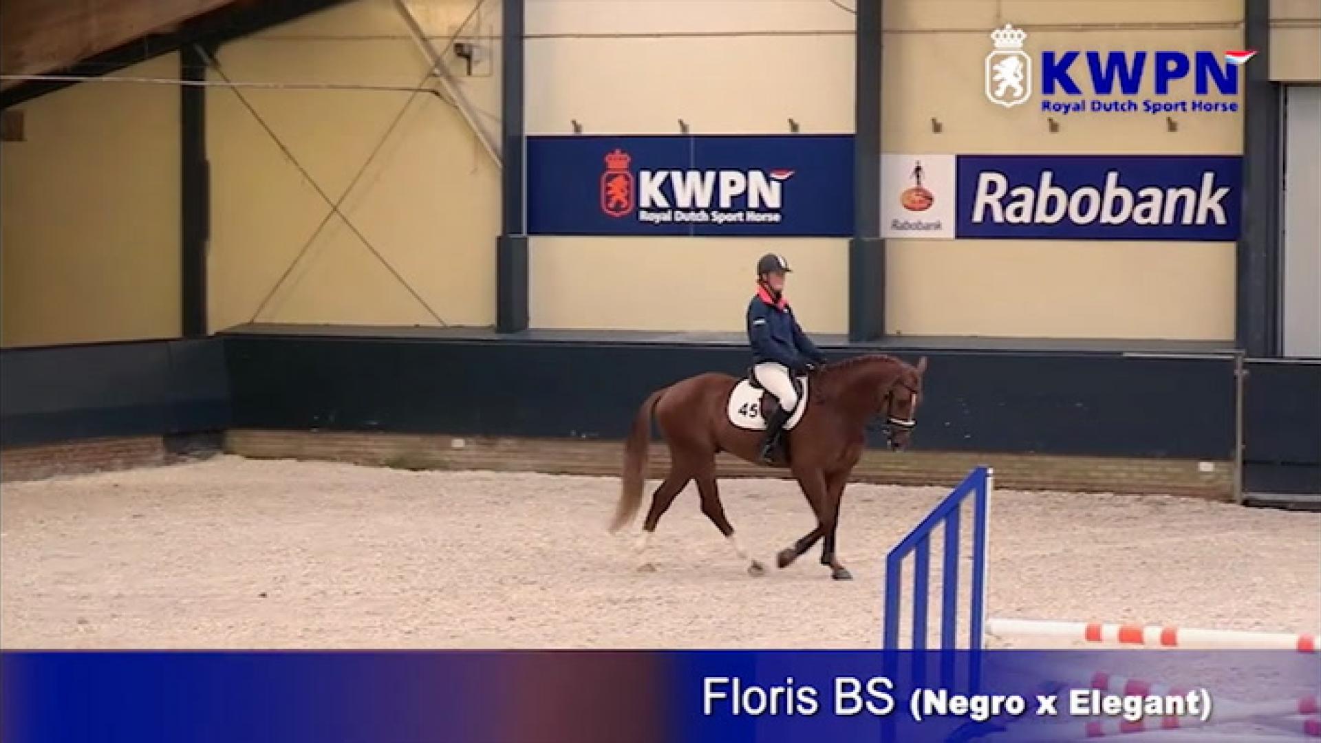 Floris BS toonde een wisselende collectie voldoende ontwikkelde veulens die een voldoende tot goede Gelderse opdruk hebben en die ruim voldoende in het rechthoeksmodel staan. De veulens bewegen met ruim voldoende houding, kracht en souplesse. De veulens uit Gelderse en tuigpaardmerries onderscheidden zich in positieve zin.