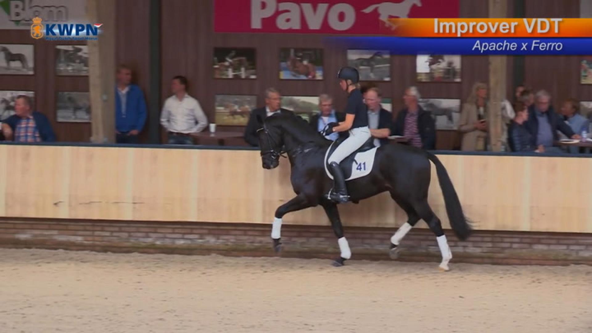 De getalenteerde hengst Apache, de vader van Improver VDT, debuteerde vorig jaar met succes in de Grand Prix-dressuur onder Emmelie Scholtens en de combinatie is in de race voor uitzending naar de Olympische Spelen van Rio de Janeiro. Apache kreeg al diverse nakomelingen aangewezen voor de Nationale Merriekeuring, en zijn zonen Grand Galaxy Win en Hometown werden bij het KWPN goedgekeurd. Improver VDT werd gefokt uit Velvet V.D.T., die als driejarige kampioene was op de Nationale Merriekeuring. Ze is de volle zus van KWPN-hengst Osmium en bracht van Londonderry een Z-dressuurpaard. Haar zoon van Jazz, Goldfinger V.D.T., werd bij het DWB goedgekeurd. Velvet’s vader Ferro won teamzilver op de Olympische Spelen en was individueel vijfde, de kroon op zijn internationaal succesvolle dressuurcarrière onder Coby van Baalen. De merrie E-Delypsa bracht naast Osmium ook een Z2-dressuurpaard van Ungaro, een ZZ-Licht-dressuurpaard van Amati en een Z-dressuurpaard van Animo. Uit de verder voornamelijk uit springbloed opgebouwde moederlijn komt ook het Grand Prix-springpaard Latzero (v.La Zarras) en het internationale springpaard Mr. Taylor (v.Coronado).