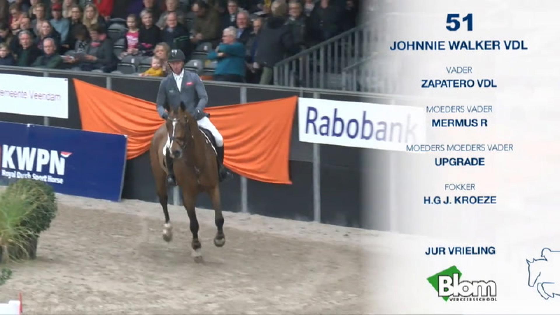 Johnnie Walker VDL toonde een uniforme collectie, goed ontwikkelde veulens die ruim voldoende in het rechthoeksmodel staan met veel uitstraling. De veulens hebben een correct gevormde voorhand met een goed gevormde, ruim voldoende bespierde hals. De schouder ligt er soms wat steil in. De rug en lendenen zijn goed van lengte en bespiering, een enkele keer wat week waarbij de lendenpartij sterker aangesloten zou moeten zijn. Het voorbeen is correct gesteld maar vaak wat teer. Het achterbeen is correct gesteld. De stap is ruim voldoende tot goed van ruimte en souplesse. De draf is functioneel, ruim voldoende van ruimte met veel souplesse maar iets duwend. De veulens van Johnnie Walker VDL galopperen opvallend goed. Ze galopperen met veel ruimte, afdruk, souplesse en balans.Aantal geregistreerde nakomelingen 2018: 6 merrieveulens