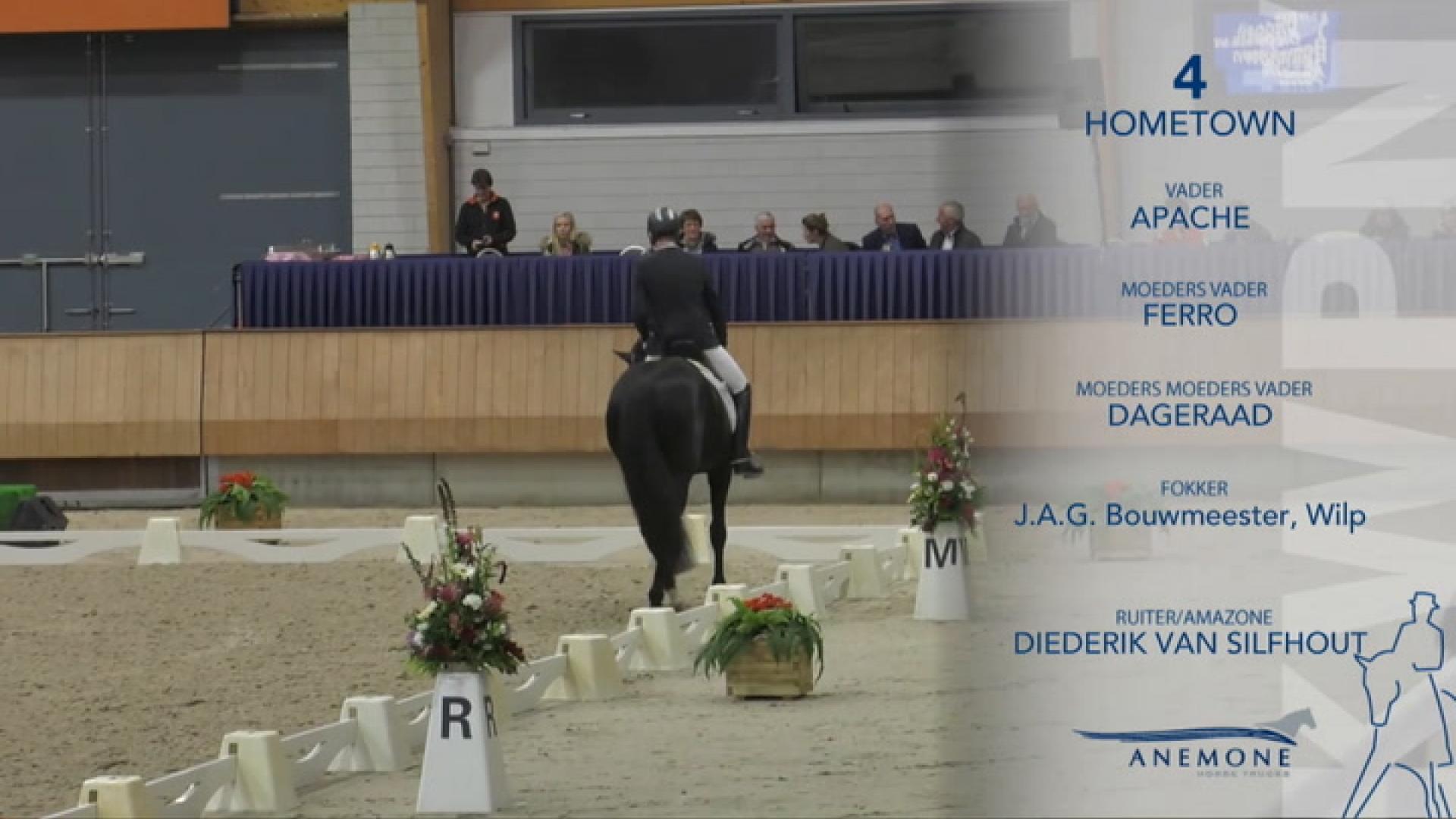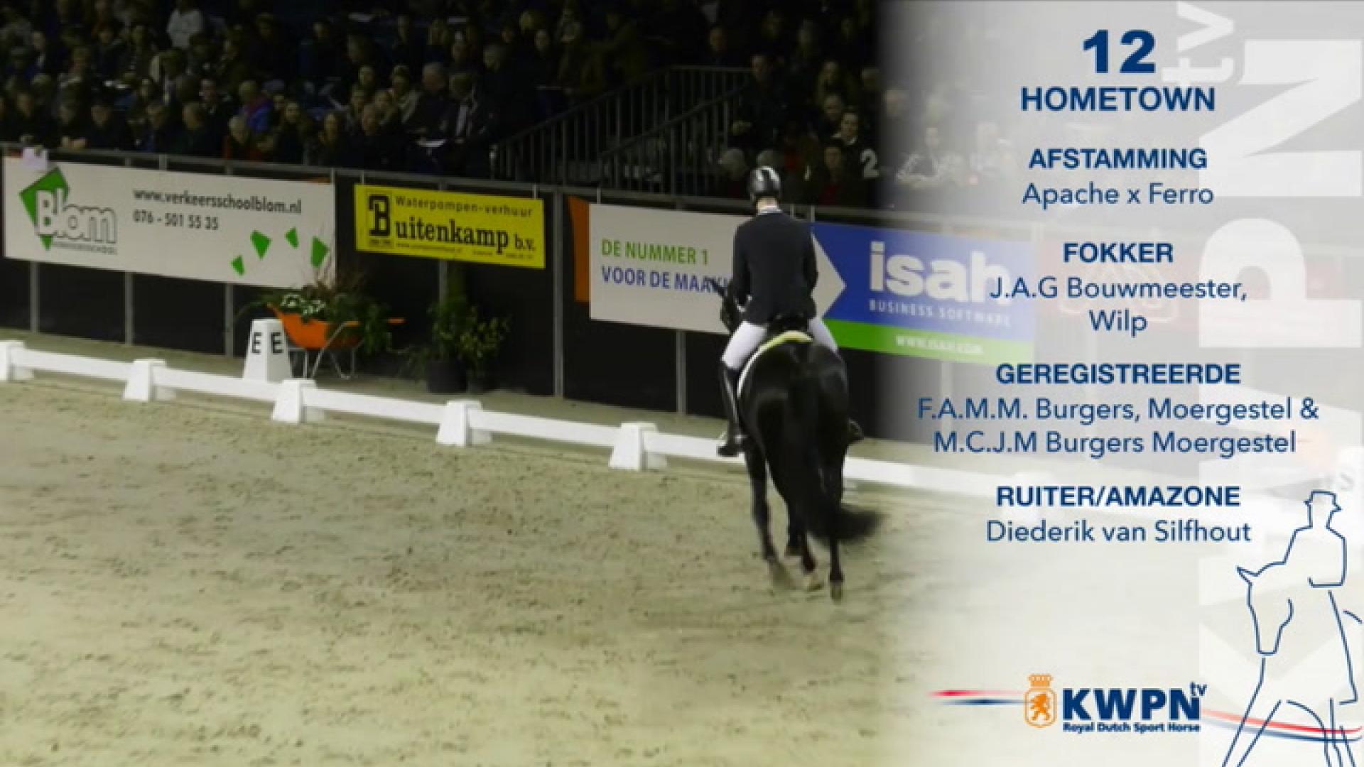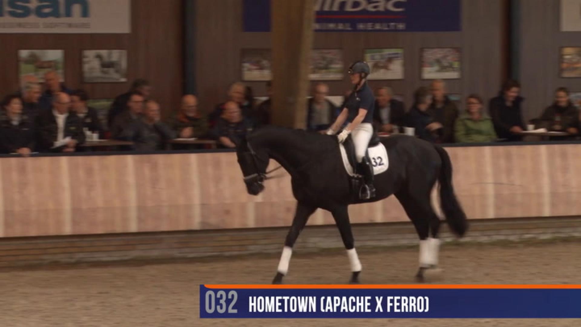 Hometown toonde een uniforme collectie goed ontwikkelde veulens die goed in het type van het dressuurpaard staan. De veulens staan ruim voldoende in het rechthoekmodel en beschikken over een sprekend hoofd. De voorhand is goed gevormd, waarbij de vaak lichte hoofd/hals verbinding en doorgaans verticaal aangezette hals opvallen. De rug en lendenen zijn meerdere malen wat week. De croupe is hellend. Het voorbeen is van terzijde gezien correct gesteld, van voren gezien een enkele maal wat frans. Het achterbeen is wisselend gesteld, zowel correct, steil als sabelbenig is gescoord. In stap tonen de veulens ruim voldoende ruimte. De draf is goed van ruimte en souplesse waarbij ze een goede houding aannemen. De galop heeft afdruk en een goede balans.