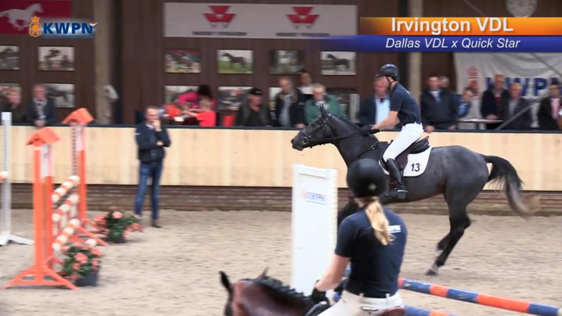 Irvington VDL is een eerlijke, snel gespannen hengst met een goede instelling. De hengst heeft veel bereidheid tot werken en laat zich goed bewerken. De stap is voldoende tot ruim voldoende van ruimte. De draf is voldoende tot ruim voldoende van ruimte en souplesse. De galop is krachtig en ruim voldoende van ruimte en met een goede balans. In beweging heeft de hengst een ruim voldoende tot goede houding en balans. Irvington VDL springt vlug van de grond met veel afdruk en goed met het lichaam naar boven. Vooral in ontspanning toont de hengst een goede techniek. Irvington VDL lijkt voorzichtig en toont veel vermogen. Als springpaard heeft Irvington VDL veel aanleg en geeft zijn ruiter een goed gevoel.