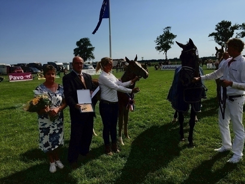 Het Harley VDL-merrieveulen Miriaantje (uit Ans ster EPTM-spr sport-spr van Namelus R) van fokker Klaas Reijne kreeg het kampioenslint van de springveulens omgehangen. “Dit goed ontwikkelde veulen is hoogbenig en laat ook een opvallende draf zien voor een springveulen. In galop valt ze op met haar gemak, souplesse en ze kan al goed changeren”, lichtte jurylid Henk Dirksen toe. Ook de als tweede geplaatste Mac Gyver (Dakar VDL uit Aula Utopia sport-dres van Sydney) van M. van Steen uit Nieuw-Vennep mag door naar de Nationale Veulenkeuring. Dit sterk gebouwde veulen heeft een goede, actieve galoppade.