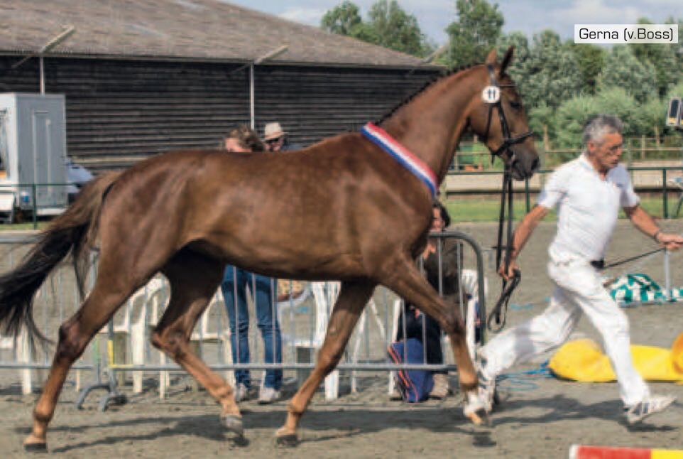 Gerna, de halfzus van de NVK-kampioene 2012: Huwerna (v. Bubalu VDL), behoorde als driejarige tot de uitschieters in de springrichting op de stamboekopname in Vrouwenpolder, waar ze met tweemaal 80 punten het sterpredicaat ontving. De jury roemde de merrie als een opvallend paard van 1.70m groot, met mooie verhoudingen, veel ras en jeugd. Ze springt met goede reflexen, mooi met de schoft omhoog en ze bouwde op. Ze toont veel vermogen en is een scherp paard.