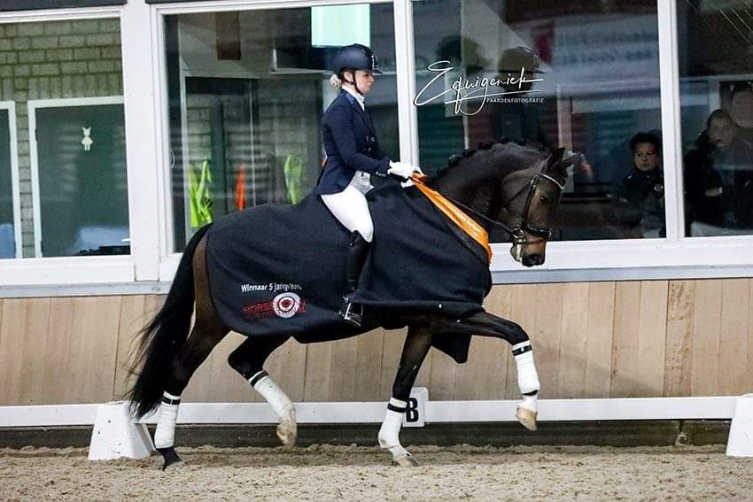 Winnares van Dressuur Talent Berlicum 2019 bij de vijfjarigen is geworden Janis Joplin (For Compliment x Krack C x Jazz), fok/eig: Rob Gevers, Berlicum) gereden door Leonieke de Leeuw.