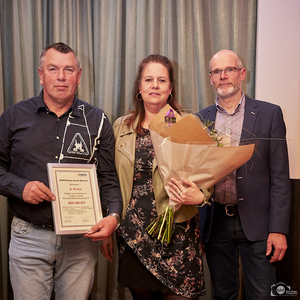 Zoon Ad Gijsbers en Elcke Gover namen namens de pas overleden fokker Grad Gijsbers de oorkonde en bloemen in ontvangst.