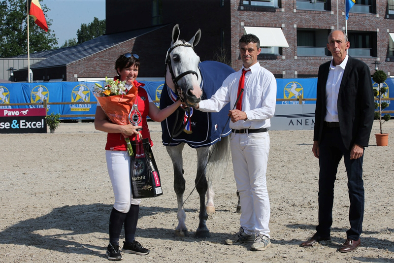Met de springmerries is een goede start gemaakt op de Overijsselse Centrale Keuring, die dit jaar voor het eerst op het bijterrein met zandbodem gehouden wordt tijdens CSI Twente. Benny Wezenberg deed goede zaken als fokker en geregistreerde van de kampioene van de vier- tot en met zevenjarige merries, de interessant gefokte Mr.Blue-dochter Justine W (uit Grandezza stb prest van Grannus). Deze vijfjarige merrie, die op het andere terrein van CSI Twente vervolgens haar kunnen toonde in de jonge paarden springrubriek, is een halfzus van het succesvolle Grand Prix-springpaard Arrayan (v.Baloubet du Rouet) van Carlos Lopez en voorheen Sergio Alvarez Moya. “Justine W heeft als driejarige al heel opvallend gesprongen op de stamboekkeuring, waar ze 85 punten kreeg voor haar uitstekende techniek en 90 voor haar enorme vermogen. Het is een sterk gemodelleerde merrie die goed in het rechthoeksmodel staat en een mooie voorhand heeft. In alles straalt ze veel kracht uit”, sprak commissievoorzitter Cor Loeffen. “Als driejarige presteerde ze heel goed op de keuring maar liep ze bij ons op stal een kleine verwonding op waardoor ze niet naar de Centrale Keuring kon. Nu vonden we het wel tijd worden om haar weer voor te stellen aan de jury, en het is mooi dat ze kampioen is geworden!”, reageert Benny Wezenberg. “Ze loopt in de sport en dat blijft ze de komende tijd ook doen, daar ligt de focus op. We hebben een volle zus die we wel inzetten voor de fokkerij maar voor Justine W staat de sport voorop. We worden iedere week gebeld op concours of ze te koop is, dus daar ligt nog een mooie toekomst!”