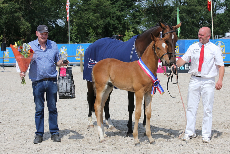 Alle vijf voor de kampioenskeuring uitgenodigde veulens verdienden een ticket voor de Nationale Veulenkeuring. In deze extra ronde kreeg Orion (Van Gogh uit Elytair ster van Namelus R) van fokker Herman Boerdijk uit Dalfsen concurrentie van vier merrieveulens. “Deze Van Gogh-zoon is een heel aansprekend en goed ontwikkeld hengstveulen met een sterke bovenlijn. Wat ook heel positief is, is dat hij zich iedere keer nog weer opwaardeert in beweging. Hij galoppeert heel lichtvoetig en met veel balans”, lichtte commissievoorzitter Cor Loeffen toe, die samen met Arnold Kootstra en Overijssels inspecteur Henk Dirksen jureert. Fokker Herman Boerdijk is heel blij met de verkiezing van zijn veulen tot kampioen. “Ik had van tevoren geen verwachtingen, maar had thuis ook al wel goede reacties op Orion gekregen van andere mensen. Zelf vind ik het ook een heel goed ontwikkeld en lichtvoetig galopperend veulen dus het is mooi dat de jury er ook zo over denkt! Dit jaar heb ik drie hengstveulens dus die zal ik allemaal verkopen. Dus als er liefhebbers voor Orion zijn, moeten ze maar even bellen”, lacht de fokker.