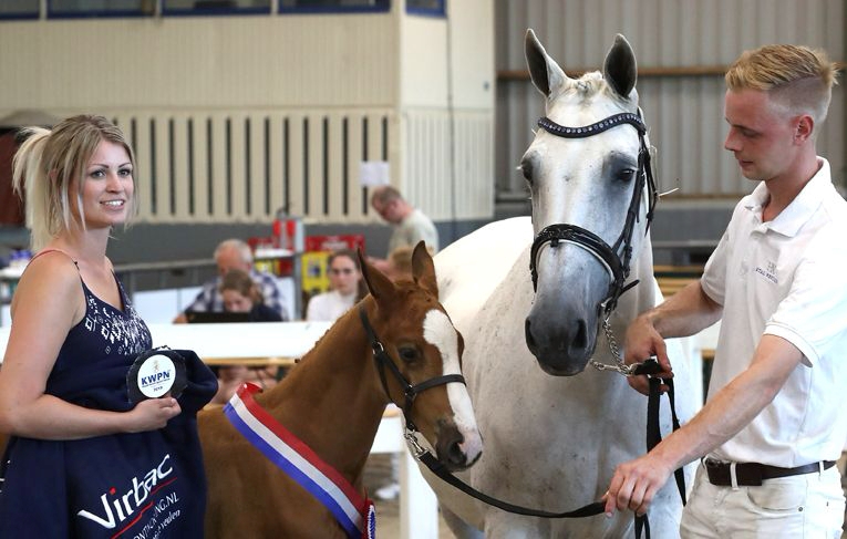 “Ik gebruik graag jonge hengsten en heb vorig jaar Paul Hendrix om advies gevraagd, omdat hij meerdere interessante jonge hengsten heeft”, vertelt fokker Lincy Bruynen-Rutte. “Hij kwam met de optie Kempinski en we kunnen achteraf wel zeggen dat het een goed advies was”, lacht ze. Het kampioensveulen Opinski B is gefokt uit de Celano-dochter Univee-B, die nu gedekt is van Hendrix’s jonge hengst Ludovicus (v.Edinburgh). “We zijn heel blij met het veulen. Hij heeft veel uitstraling, een goed model en hij beweegt met gemak. Het is de eerste keer dat we met een veulen naar de keuring gaan dus heel mooi dat het dan zo uitpakt! Hij zal in de Limburgse Veulenveiling onder de hamer komen.”