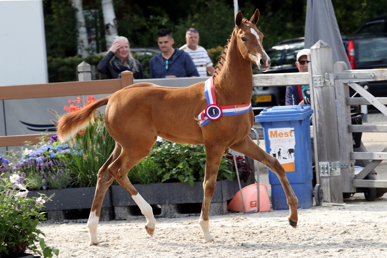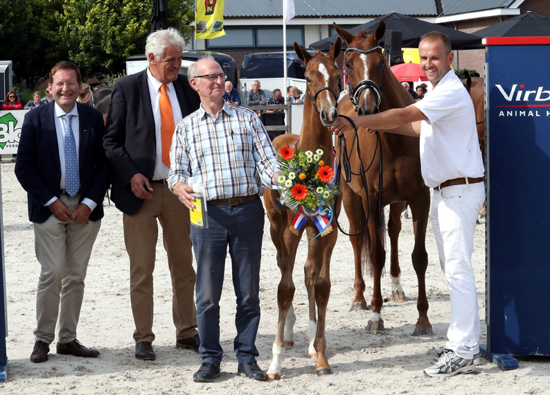 Die keuze viel dus op de zeer charmante High Five-zoon Oristo. “Een goed ontwikkeld, hoogbenig veulen met een correct fundament. Hij heeft een lange lendepartij met een goed bespiering en maakt in beweging heel veel front. Hij heeft een sterk achterbeen en kan goed schakelen. In galop heeft hij veel afdruk.” Hiermee behaalde fokker Appie Dijkstra uit Opende, die twee veulens had in deze kopgroep, zijn eerste kampioenschap binnen. “Ik ga altijd naar de veulenkeuringen, bij ons in Groningen worden die nog enorm goed bezocht. Daar was dit veulen ook al kampioen dus ik had wel hoge verwachtingen. Maar de kampioen had ik nog nooit, daar ben ik heel blij mee!”