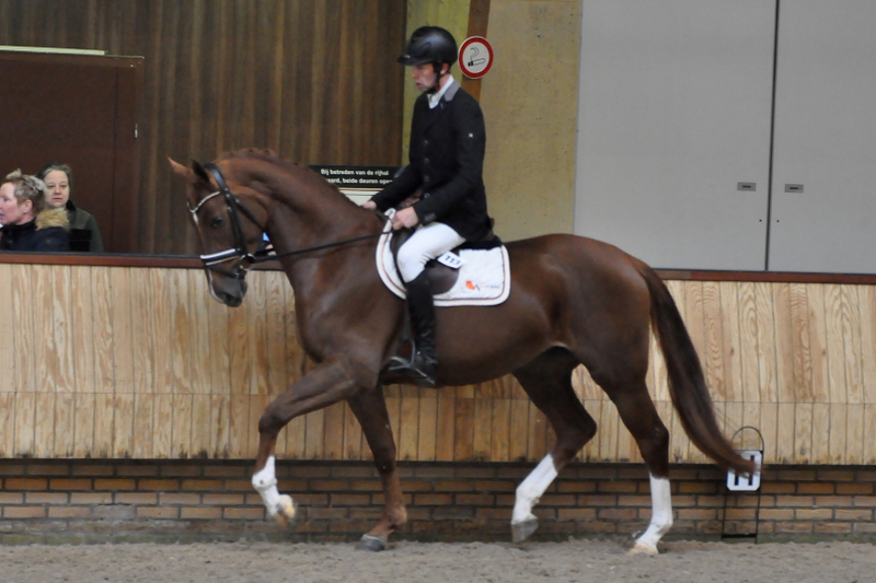 Van de tien paarden die onder het zadel werden voorgesteld, slaagden er acht. De hoogste punten waren voor Liz T (Alexandro P uit Zoë van Wilco) van fokker J.W.J van Heck uit Boven-Leeuwen. Deze merrie stond afgelopen zomer ook al aan kop van de driejarige merries op de Dag van het Gelders Paard. “Dit is een paard dat zich heel goed liet bewerken, met een hele goede beentechniek en veel lichaamsgebruik. Ze heeft een sterke, gedragen galop en is een rondom overtuigend paard.” Liz T was al voorlopig keur, slaagde vandaag met 81,5 punten en is nu dus keur.