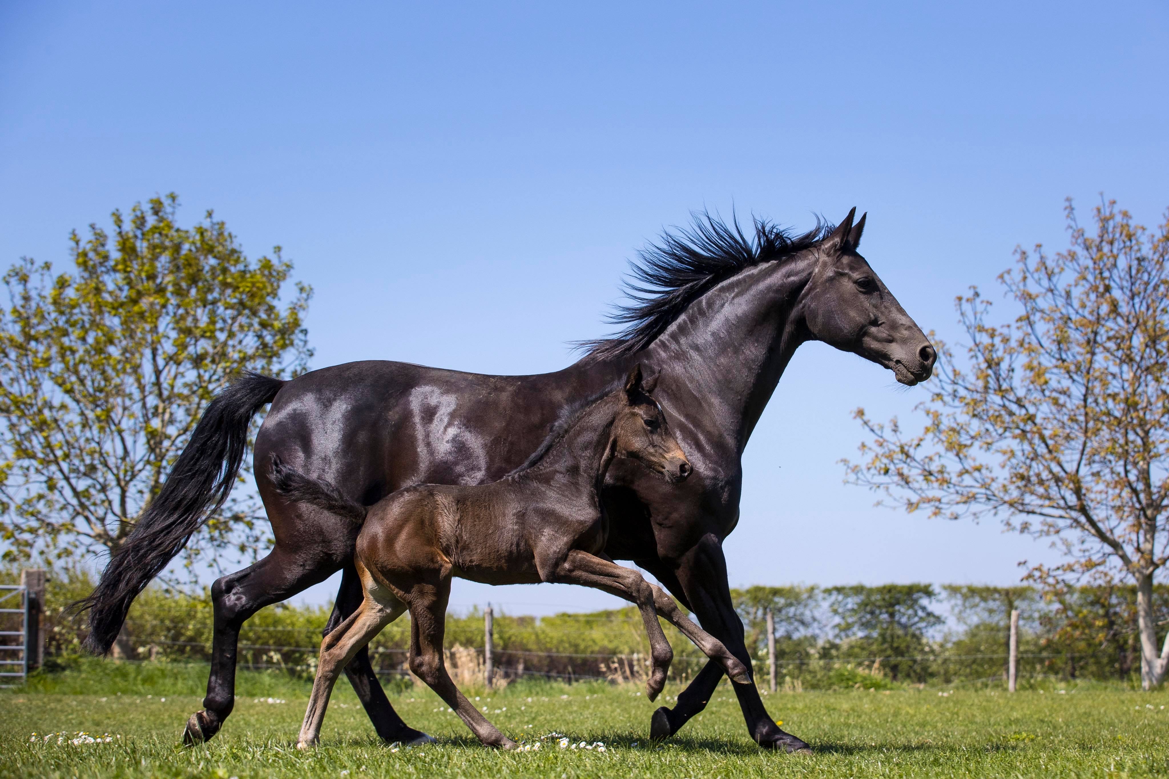 Aangezien mijn moeder en ik het fokken erg leuk vinden heeft mijn moeder vorig jaar een elite, prok merrie genaamd Zazou (San Remo x Gribaldi) aangekocht om mee te fokken. Daaruit hebben we dit jaar een merrieveulen van Just Wimphof. Zazou is een sensibele merrie met veel go en veel souplesse. We hebben voor Just Wimhof gekozen vanwege zijn fijne karakter, goede bewegingen met veel balans. We waren van plan om naar de centrale keuring te gaan, maar helaas was daar ineens Corona. Zazou is nu opnieuw drachtig maar dan van de hengst Livius. Deze hengst spreekt ons erg aan en heeft veel sport erachter zitten. Wij zelf denken dat dit een goede match is voor Zazou. Bij het kiezen van een hengst raadplegen we o.a. altijd de KWPN hengstendatabase en bekijken we de genoomwaarden, verder verdiepen we ons in de lijn achter de hengst, eventuele nakomelingen als die er zijn en is een goed meewerkend karakter, een goede instelling en rijdbaarheid voor ons een van de belangrijkste pijlers, buitenom dat de hengst bij je merrie moet passen qua bouw en beweging uiteraard. De bedoeling is om elk jaar een veulen te fokken om hier in de toekomst eventueel mee door te fokken en uit te brengen in de sport.