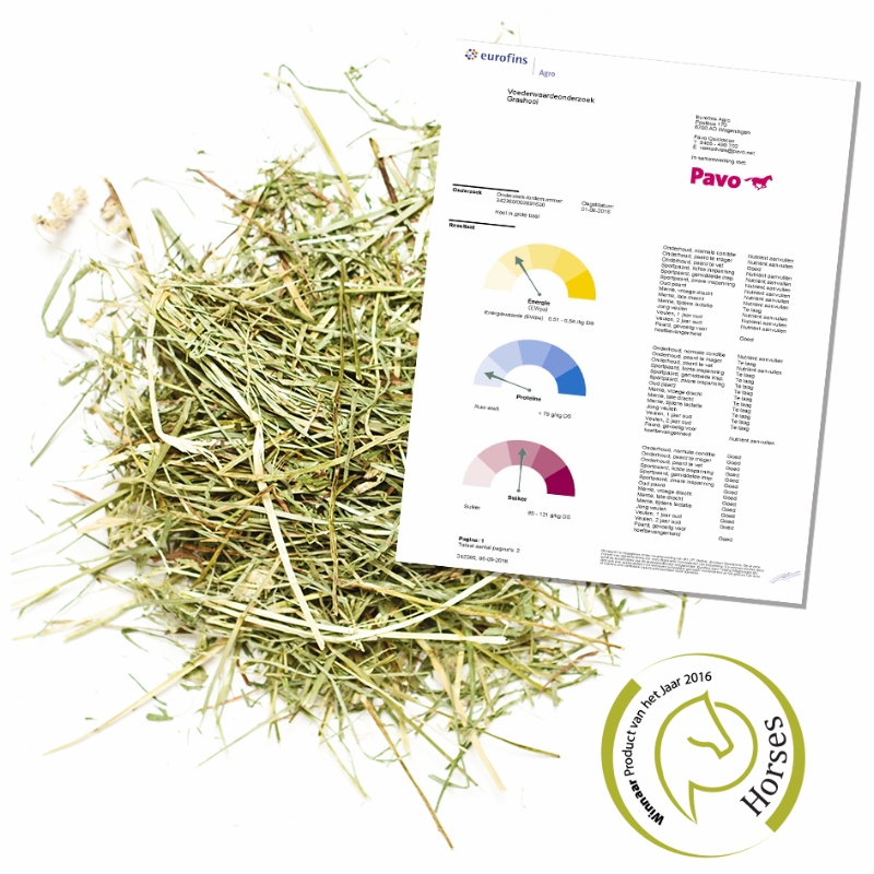 Daarom ontwikkelde Pavo in 2016 samen met Eurofins Agro de Ruwvoer Quickscan: een ‘snelle’ analyse waarbij paardenhouders tegen kostprijs hun ruwvoer kunnen laten testen op energie-, eiwit- en suikergehalte. Veerle: “Inmiddels hebben we dit uitgebreid en wordt ook het drogestofgehalte gemeten. Al deze inzichten zijn van groot belang voor de gezondheid en prestaties van bijvoorbeeld probleempaarden met hoefbevangenheid, maar zeker ook voor sportpaarden en drachtige merries.”