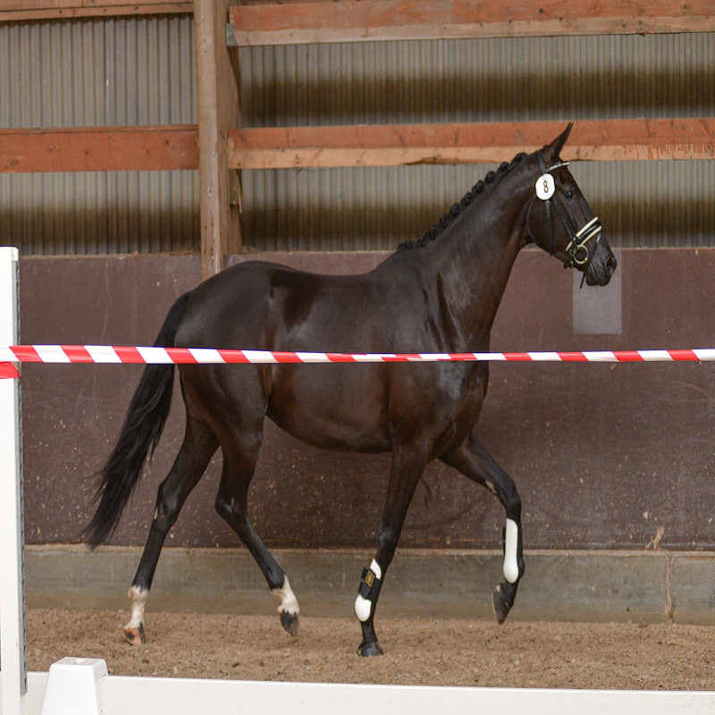 Miss Glamourdale LH, met hoe kan het ook anders met zo’n naam, Glamourdale als vader mocht ook rekenen op een positieve beoordeling. “Deze goed in het rechthoeksmodel staande merrie heeft voldoende front en stapt actief. In draf toont ze veel tritt en buiging in de gewrichten. Aangalopperen doet ze wat moeizaam, maar ze drukt wel af in die galop.” De zwarte merrie is gefokt bij R.J. Lickley in Wolverhampton en staat geregistreerd bij J2L Stables BVBA. Ze is geboren uit ster PROK Diana (v.Don Frederico). Tijdens haar stamboekopname kreeg ze 70 voor exterieur en 75 voor beweging en dat leverde haar het sterpredicaat op. Even later in de Centrale Keuring werd ze niet in graad verhoogd, want daarvoor miste ze met haar 1.62m net even wat ontwikkeling.