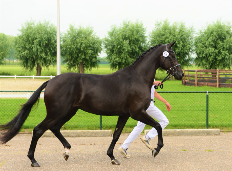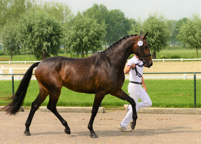 De met de toepasselijke naam getooide Nice is een zwarte dochter van Desperado en komt uit elitemerrie Enjoy (v.Ampère), waarmee f/g Connie Feringa uit Dreumel succesvol was tijdens de Pavo Cup (75.5) en tevens in de wedstrijdring. De royaal ontwikkelde en lang gelijnde Nice schreed uitzonderlijk mooi in stap, draafde met veel ruimte en met een mooie techniek. In de galop changeerde ze heel makkelijk. Ze beschikt over een goede schoft- en schouderpartij. Als je iets zou willen aanmerken, dan zou ze in de middenhand wat sterker mogen zijn, aldus de jury. De score was voor exterieur 75 en voor beweging 80. Nog meer Desperado-bloed werd aangetroffen in Nissie. Een lang gelijnde en met haar 1.71 m royaal ontwikkelde dochter van Desperado-zoon Ibiza. Ze komt uit Sissy (keur pref prest sport v. Metall). Deze merrie heeft al meerdere fijne sportpaarden gegeven en is tevens de moeder van het Grand Prix-dressuurpaard Boogie Woogie (v.Tango). Nissie zou wat ruimer mogen stappen, maar draafde en galoppeerde op fijne wijze en met veel afdruk. Ze kreeg van de jury 75 punten voor haar exterieur en 80 voor beweging. Nissie is gefokt en staat op naam van Marten Tijssen uit Lienden. Het voorlopig keurpredicaat werd ook toegekend aan Namora BB van f/g Bianca Boerboom uit Wamel. De goed ontwikkelde bruine merrie is een dochter van Ferdinand, net als Desperado een zoon van Vivaldi. Namora BB stapte actief, draafde krachtig en in een goede takt. In galop liet zij veel afdruk zien. Haar schouderpartij viel op door veel lengte en bewegen deed ze ruim voldoende opwaarts. Voor exterieur scoorde ze 70 en voor beweging 80. In de wijdvertakte moederlijn van deze stoere merrie komen we bekende namen zoals de KWPN-goedgekeurde Feel Good en El Capone tegen.