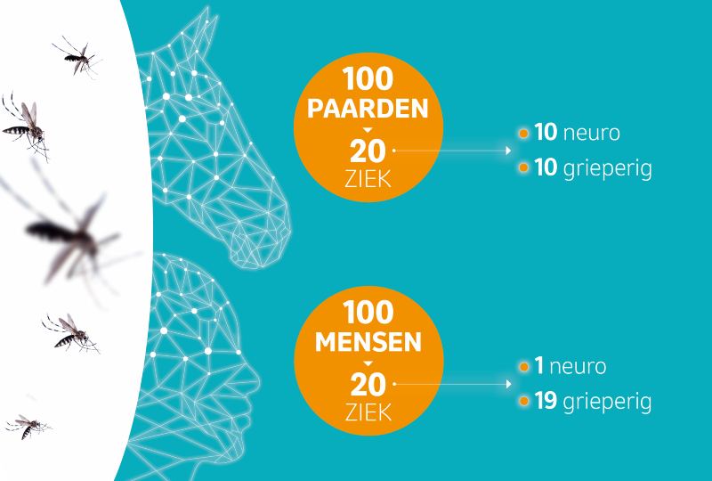 Bij paarden werden er het afgelopen jaar 183 gevallen gemeld in Europa. Het merendeel van deze besmettingen vond plaats in Spanje (133) en Duitsland (23), waar het WNV sinds 2018 aanwezig is. Overige meldingen kwamen uit Italië (16), Frankrijk (5), Portugal (2), Oostenrijk (2), Griekenland (1) en Hongarije (1).