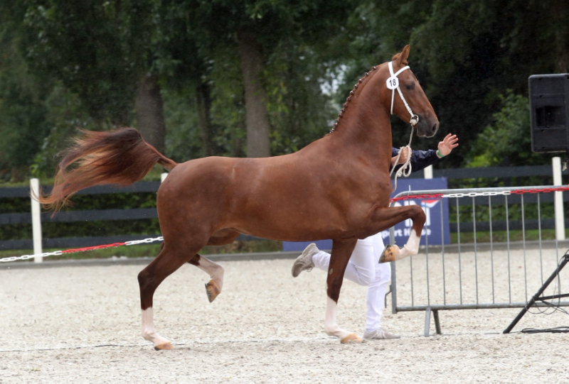 Plaats twee werd voor Nuhuwandra (Cizandro uit Huwandra ster van Atleet, fokkers Gebr. den Otter uit Bruchem) van Gebr. van Manen uit Ede. Viggon van Beest: “Deze merrie is een heel complete tuigtypische merrie met charme en jeugd. Zij is mooi in verhouding gebouwd en ze is qua exterieur niet de mindere van de kampioen maar in beweging en dan met name in het opwaartse beeld moest ze toegeven op de kampioen. Daarbij was het totaalbeeld van de koploper ook wat royaler.”