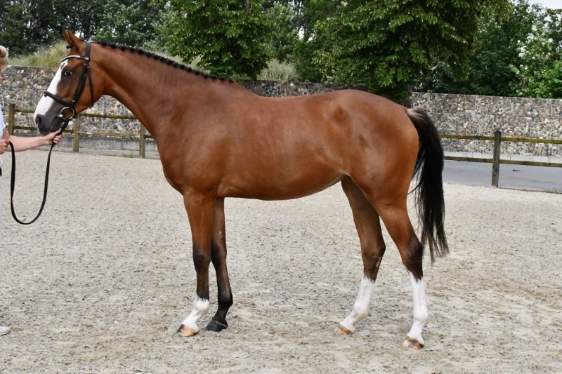 Een bovenbalkscore van 75/85 was er ook voor de Zangersheide-geregistreerde Agani du Gumo MP Z (Aganix du Seigneur uit Gumo Twirre MP elite eptm-spr sport-spr PROK v. Numero Uno) van S.B. Kleerekooper uit Hoenderloo. “Deze merrie is heel langgelijnd, maar had op stand een iets verticale hals. Ze viel op met een galop met heel veel ruimte en balans, waarin ze makkelijk kon schakelen. In het springen was ze voldoende vlug, heeft ze een goed lichaamsgebruik en toonde ze heel veel vermogen. Daarbij maakte ze achter de sprong heel goed af. Dit is een heel compleet paard.”