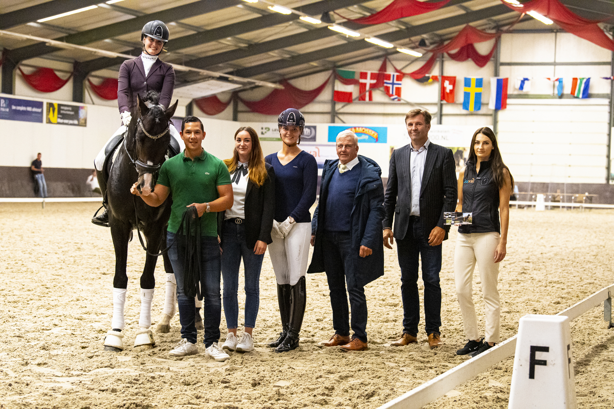 Het was de Jazz-zoon Las Vegas (uit Sandritana van hof Olympia ster pref prest v. Sandro Hit, fok. Stoeterij Broere, Alblasserdam) die de gastamazone het meest overtuigde. Emma kon een 9,5 voor het overrijden kwijt aan de talentvolle ruin. Las Vegas is volgens de jury een paard die in beweging heel veel lossigheid en ruimte ontwikkelde. Hij heeft een zeer goede stap en een draf die getypeerd wordt met veel expressie in het voorbeen. Amazone en eigenaresse Sanne van der Giessen kocht Las Vegas een jaar geleden. Ze werkt bij Lynne Maas en daar stond de ruin in training voor de verkoop. “Las Vegas was niet heel opvallend in eerste instantie, maar hij ontwikkelde zich in drie maanden tijd zo goed dat mijn vader besloot hem voor mij te kopen. Ik had niet verwacht dat hij zo goed zou worden. Natuurlijk had ik dat wel gehoopt. Las Vegas heeft geen minpunten en heeft drie heel goede gangen, maar vooral zijn karakter is waanzinnig goed. Hij is nooit moe en blijft gaan. Ik wil vooral zo veel mogelijk van en met hem genieten en zoveel mogelijk leuke wedstrijden meepakken. Het is gewoon een heel goed paard, en daarnaast is hij ook vreselijk lief en grappig. Ik geniet volop van hem!”