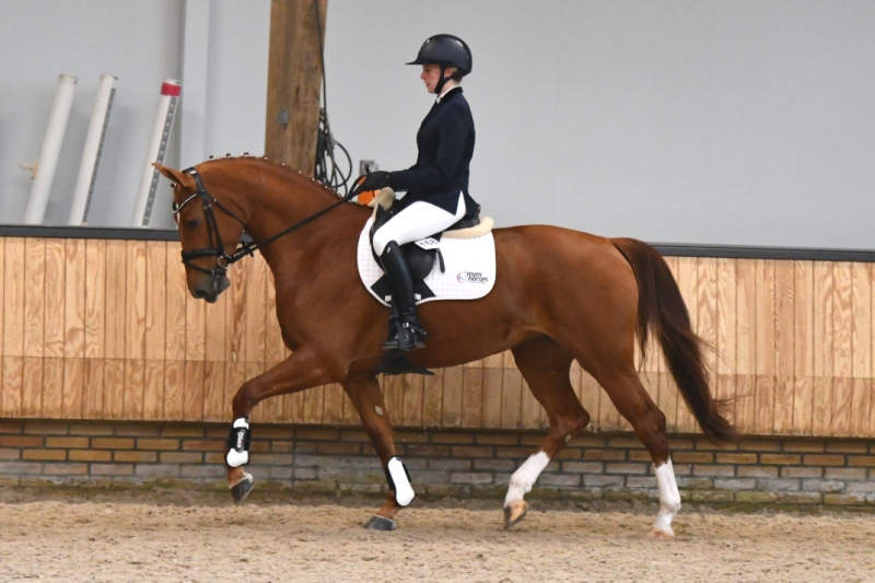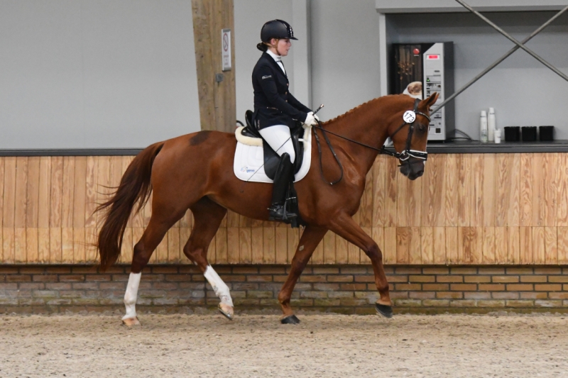 Marenda J, een dochter van Henkie uit Nationaal Kampioen Brenda (elite pref prest sport v. Special D) van Albert de Jong uit Ophemert liet zich heel makkelijk rijden, toonde een actieve stap en draafde met heel veel lichaamsgebruik in een goede takt. In galop liet ze een goede sprong zien. Als je iets zou willen zeuren zou ze soms iets meer houding mogen maken in beweging. Springen deed ze met een fijne instelling. Ze landde steeds in de juiste galop en waardeerde zich in het vrijspringen ook nog op. Haar totaalscore bedroeg 82.5, voor alle springonderdelen liet ze zelfs 85 noteren. Marenda J keerde huiswaarts met het keurpredicaat. Sabrina Melotti heeft haar opgeleid en stelde haar ook voor.