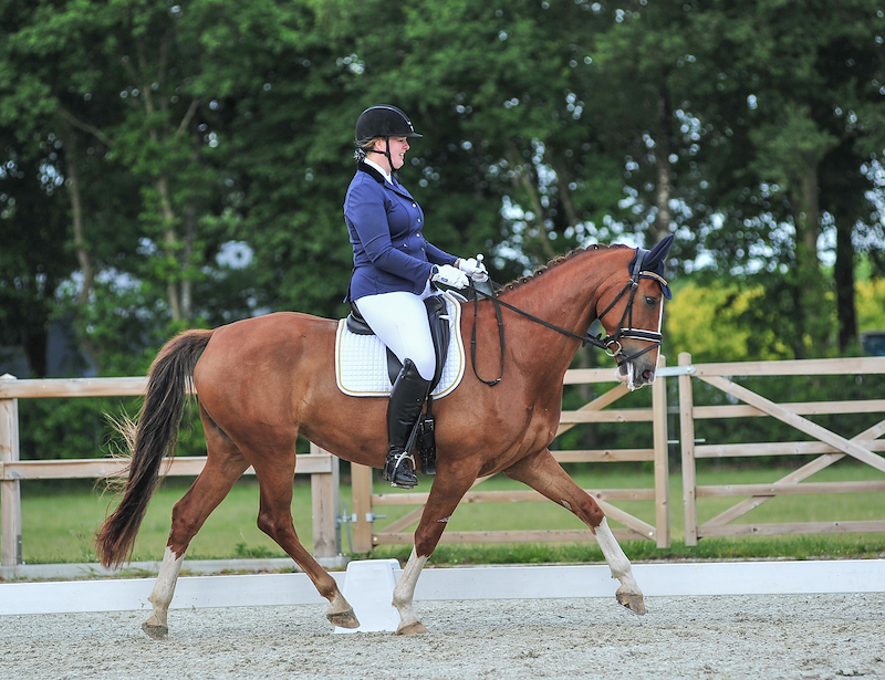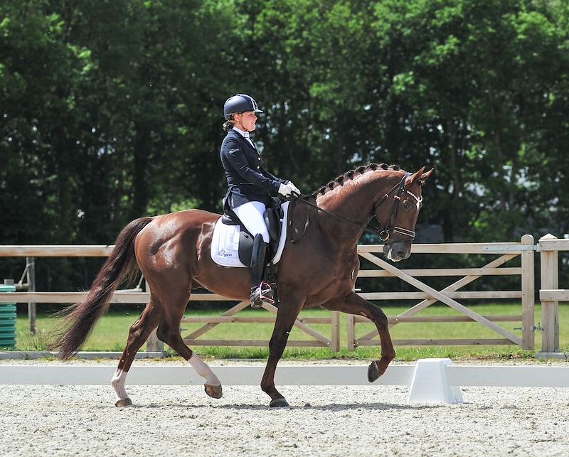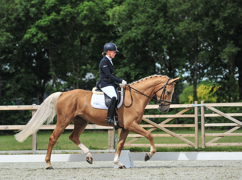 Zo werd ze twee keer eerste in de goedgevulde Z-rubriek met J’Adore Cartouche E (v.Toevallig) met hoge scores van 242.5 en 241 punten. “Zo’n enorm fijn paard, ze wil altijd werken en haar best doen. Teveel inwerken met mijn handen doe ik nooit bij haar, want daar wordt ze kregelig van. Maar dat is ook echt niet nodig en ik geniet altijd van het rijden op haar.” In de Z1 was ze zelf haar grootste concurrent, want ook met Reffrey van de Marthahoeve Texel (v.Roman Lifestyle W) behaalde ze 242.5 punten en deelde daarmee dus de eerste prijs. “Reffrey rijd ik nog niet zo heel lang. Hij is nog hengst, dat liet hij in het begin dan ook best wel merken, maar ik ben hem overal naar toe blijven meenemen en merk dat hij steeds rustiger wordt, ook in de proeven.” In de Z2 ging in de eerste proef de derde plaats naar Maxime Devos. Zij stelde haar Totilas-zoon, Fresh Orange Geronimo, op fijne wijze voor. De zwarte ruin komt uit een bekende Gelderse merrie, Soline (v.Inspekteur). Deze is elite-, prestatie- en sportmerrie is inmiddels 23 jaar, maar nog steeds topfit. Familie Devos heeft meerdere veulens uit haar gefokt.