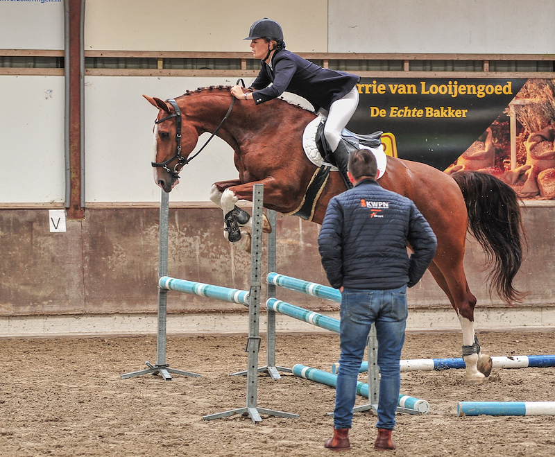 Terug naar de dressuur: in beide L1-proeven ging de tweede prijs naar Roy Cornelissen met Indyrona B, ook weer een dochter van Rubus B. Roy: “Ik was net niet helemaal tevreden. Indyrona heeft geen spectaculaire bewegingen, dus daar moet ze het niet van hebben, maar wel van het secure rijden en het constante beeld wat ze geeft. Vandaag kon ik voor mijn gevoel sommige dingetjes net niet genoeg afwerken, maar het is een heel steady en fijn paard om mee op wedstrijd te gaan.” Roy reed met veel gevoel en aan de zijlijn zag het er in ieder geval keurig uit, daar waren de punten, 207 en 195.5, dan ook naar. Indyrona B is een volle zus van keuringstoppers, elitemerrie Jill-Rona B en keurmerrie Evyrona B. Ze komt uit de bekende Marona (keur preferent v. Galant). Gerrit en Dora te Bokkel waren ook in Putten om de verrichtingen van hun fokproduct te bekijken. Ze kwamen niet voor niets, want ook Manon Berghuis met L'Eau D'Issy B (Ferdeaux x Rubus B) mocht een prijs ophalen. Zij startte L2 en werd eerste in de tweede proef met 204.5 punten. Misschien iets aan de rijtypische kant, maar wel met veel uitstraling en een heel fijn karakter.