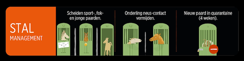 - isoleren van nieuwe paarden bij aankomst