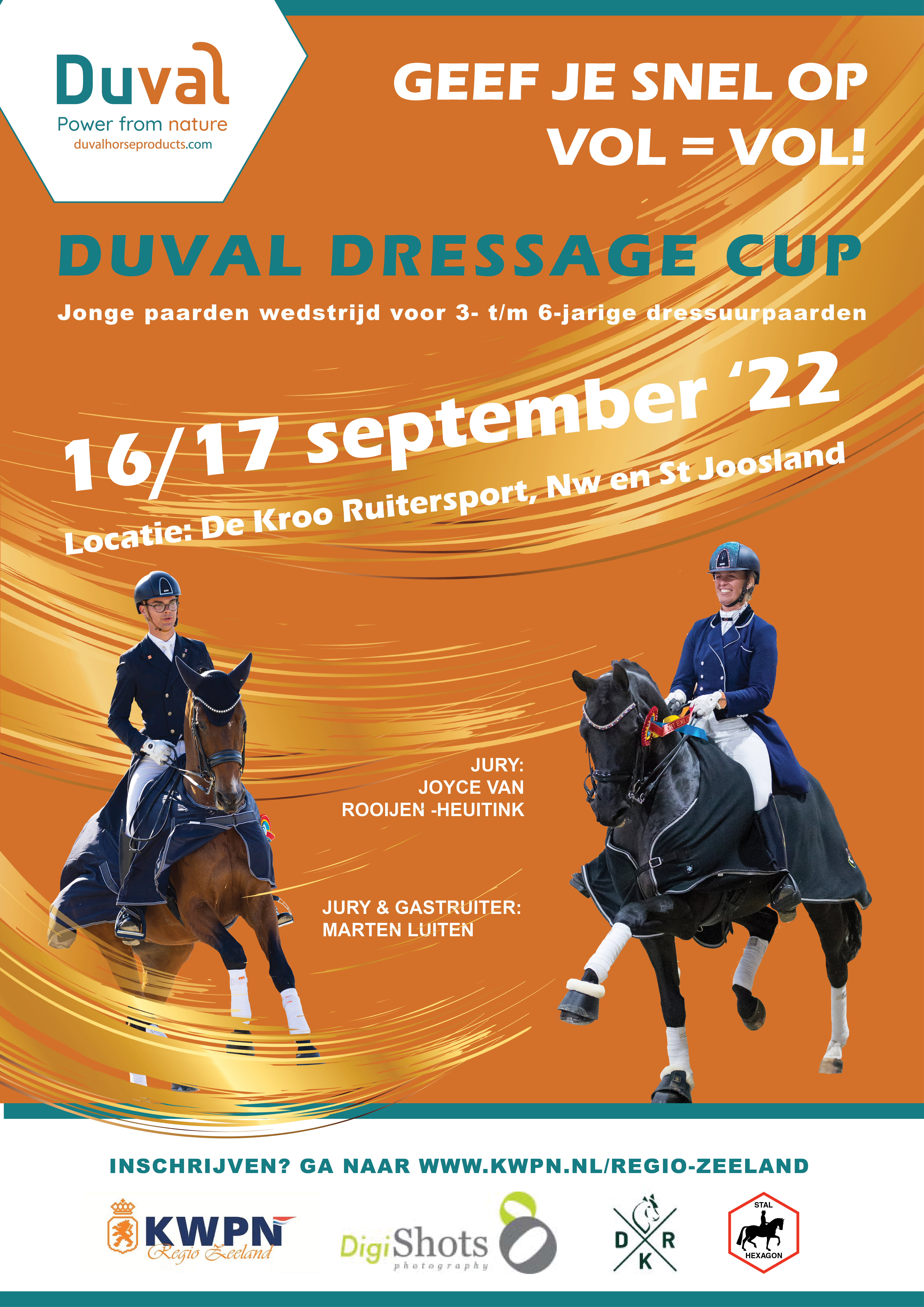 NIEUW DIT JAAR! Vanaf dit jaar kun je je paard ook aanbieden voor stamboekopname bij het KWPN. Je kunt je paard hiervoor aanmelden via het inschrijfformulier voor de Duval Dressage Cup.