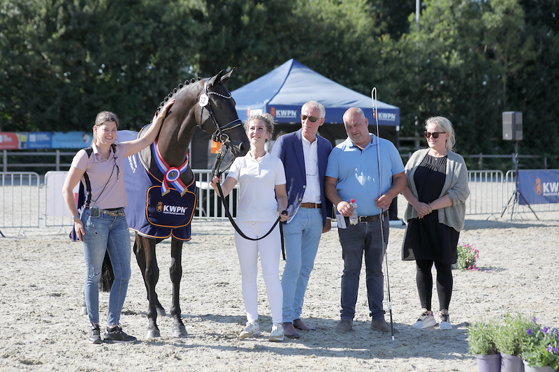 In de baan stond als juryteam; Johan Hamminga, aspirant-jury Luuk Smetsers en regio-inspecteur Petro van Trommelen. De laatste lichtte toe: “De kampioen van vandaag heeft een echte bloeduitstraling. Gisteren had ze geen snelheid nodig om fijn te kunnen draven en dat liet ze vandaag ook weer goed zien. Daarbij beweegt ze steeds bergop en met veel lossigheid.” Deze Oresia ASD is een bijna zwarte dochter van All at Once komt uit de preferente stermerrie Ciresia (v.Sandreo). In de moederlijn komen we naast enkele internationale sportpaarden en aangewezen hengsten ook de KWPN-goedgekeurde Grand Prix en Olympiade-hengst Glock’s Dream Boy tegen. Oresia ASD is gefokt door A. Schellekens uit Sprang-Capelle. Ze staat geregistreerd bij Maarten Pieter Overvliet uit Leiden. Hij heeft haar samen met echtgenote Rebecca Dudley en Stal Leeuwenhof.
