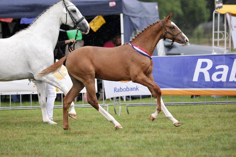 En nog twee veulens mogen hun opwachting gaan maken op het NVK. Om te beginnen de als vijfde geplaatste Sarai Verdoni (Kjento uit Maia B ster IBOP PROK van GLOCK’s Toto jr, fokker N.M.H. van Dommelen uit Dieren. Grootmoeder Rhea B kennen we ook als de moeder van Lotje Schoots’ Zware Tour-paard Athene B uit de bekende fokkerij van de Familie Bleeker en de goedgekeurde hengst Nordic Blue Hors (v.Totilas). “Een zeer aansprekend veulen met een mooi hoofd en veel front. Ze heeft een goede bovenlijn en draafde in de finale met meer souplesse en techniek dan in de eerste ronde. De galop was nog een beetje moeilijk.”