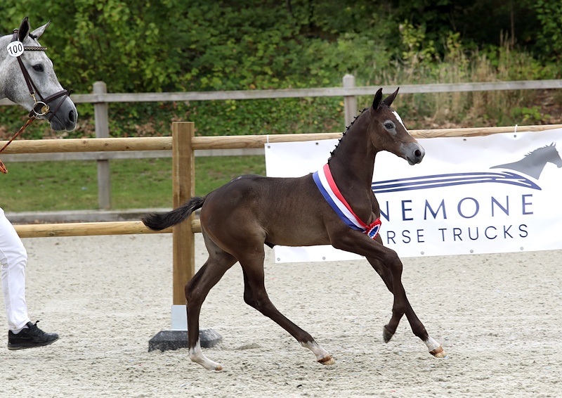 De kampioen Terry-Lynn A.K. is nog een heel jong veulen, geboren op 10 juni. Ze is een dochter van Emir R en komt uit Oceana (v. Up to Date). Marcel omschreef haar als: “Een heel aansprekend veulen, goed in het rechthoeksmodel en voorzien van een correct fundament. Bewegen doet ze makkelijk en lichtvoetig, met veel souplesse en balans en een actief gebruik van het achterbeen.” Terry-Lynn is gefokt door Ashley Kollen uit Schoonebeek. Zij bracht de moeder van Terry-Lynn uit in de sport, maar wilde er ook heel graag een veulentje bij fokken. “Ik heb Oceana aangekocht om haar bloedlijn. Toen ik haar zag, dacht ik: ‘die moet ik hebben.’ Emir R leek me fantastisch op haar te passen en dat heeft dus heel goed uitgepakt. Met moeder en dochter wil ik heel graag een eigen foklijn uitbouwen en dit is al een prachtig begin.”