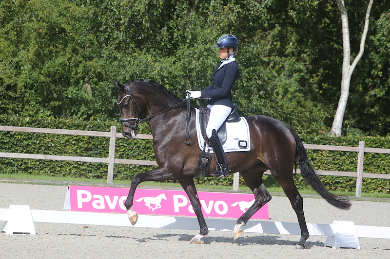 Olympia W kreeg een 9 voor de stap, dat cijfer kreeg ook Ovation (Jovian uit Jubilation stb-ext D-OC van Desperado, fokker T.E. Mulder – Dolsma uit Dwingeloo), die onder Dominique Veenstra naar 83 punten liep. “Dit paard werd goed voorgesteld en liep al mooi naar boven. De stap is zuiver in de viertakt met een goed lichaamsgebruik en mooie activiteit. In draf zagen we veel buiging, afdruk en mechaniek, maar zou het achterbeen nog wat vloeiender naar voren door moeten treden. De galop is mooi naar boven en we zagen hierbij vooral hele goede mogelijkheden tot sluiten.”