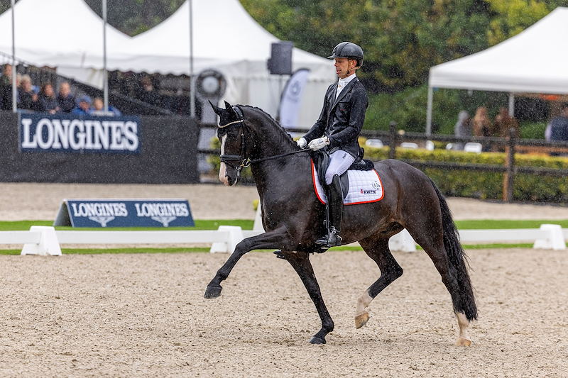Amber Hage is waarschijnlijk een van de jongste amazones op dit WK, het is in ieder geval haar eerste WK en om dan rechtstreeks in de finale te belanden is een hele prestatie. Haar Mercurius ACM maakte in die finale opnieuw indruk. De aansprekende hengst, die beschikt over een mooi silhouet, liep heel harmonieus en in een mooi contact met de ruiterhand. De draf was mooi, heel expressief en elegant. Stappen deed hij zuiver maar zou daarin wat mee overstap mogen laten zien. In galop zou hij soms even iets meer op de achterhand en bergop mogen. Voor submission en perspectief kreeg deze combinatie allebei 8.3. Mercurius ACM is een zoon van Dream Boy en komt uit sportmerrie Fiësta (v. Gribaldi). Fiësta en Mercurius zijn beide uitgebracht in de Z2-dressuur. In de moederlijn van deze hengst komen we het Zware Tour-paard Dafira (v. Jazz) tegen. Mercurius ACM is gefokt bij van der Horst-Meeus & Meegdes en staat geregistreerd bij Amber Hage en Casper Meegdes.