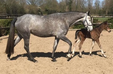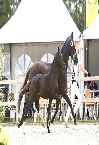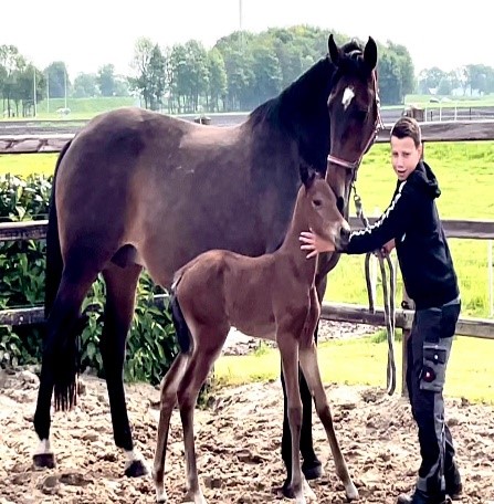 Naast dressuur merries heeft Jelle ook nog een aantal merries uit springstammen. Een daarvan is de merrie Heyacinthe VDL. Deze Zavall x Pharaon stermerrie bracht al een aantal hengstveulens van Impressive, Jardonnay en Zirocco Blue. Jelle wacht nu op een mooi merrieveulen uit deze Holsteinse stam van o.a. Ahorn.