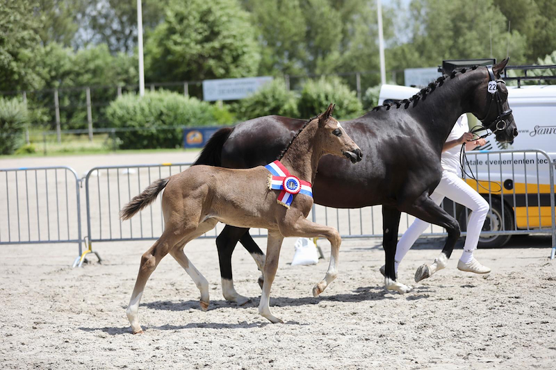 Het beste merrieveulen was Extreme U.S.-dochter Una Nostra (uit Elmara ster pref PROK van Zhivago) van fokkers Carla de Meyer – Haak en Petra Verschueren – Tollenaar uit Hoek. “Dit is een royaal ontwikkeld, langgelijnd en hoogbenig veulen. De hals komt een fractie diep uit de borst, maar dat zien we in beweging niet terug. De stap is goed van ruimte. In draf liet ze veel beentechniek en souplesse zien. De galop heeft ruim voldoende ruimte en lossigheid. Dit veulen zou in kracht en afruk nog een fractie meer mogen overtuigen.”