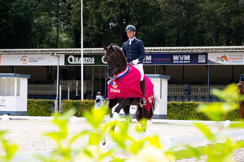 Sem Stiemer en GLOCK’s Toto Jr-zoon Topgun (uit Chita W elite IBOP-dres PROK van Vivaldi, fokker J. van Weerden uit Meijel) mochten vandaag een vierde plek in ontvangst nemen. Daarmee bleven zij voor op Extreme U.S. (Escamillo uit Viva Contana PS van Vivaldi, fokker Gestuet Lewitz uit Steinfeld). Deze Pavo Cup-kampioen van 2023 werd voorgesteld door Renate van Uytert – van Vliet.