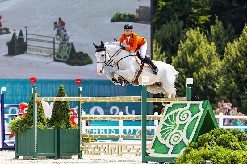 Nadat Maikel van der Vleuten met de Bustique-zoon Beauville Z met één springfout en twee strafpunten voor tijd de ring uit kwam, lag de druk voor een nulronde extra op de schouders van Olympisch debutante Kim Emmen met Imagine (Cassini Gold uit Nigel ster sport-spr prest van Lord Z). Maar gelukkig heeft ze daar zelf geen last van: “Die druk voel ik gelukkig nooit zo. Na het parcours lopen heb ik nog een paar combinaties bekeken, voordat ik mijn plan definitief maakte. Er waren een paar lijnen met opties en we besloten dat ik gelijk in het begin al wat risico moest nemen”, vertelt Kim Emmen.