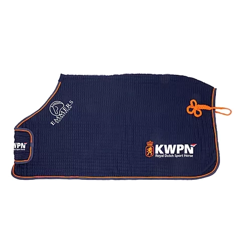 Naast deze deken en sjabrakken bestaat het assortiment ook uit blauwe polo’s en vesten van het merk Ego7 en een lucky charm in de kleuren van het KWPN. De verzendkosten bedragen €6,- naar Nederland en België en verzending is gratis bij een bestelling van boven de €49.