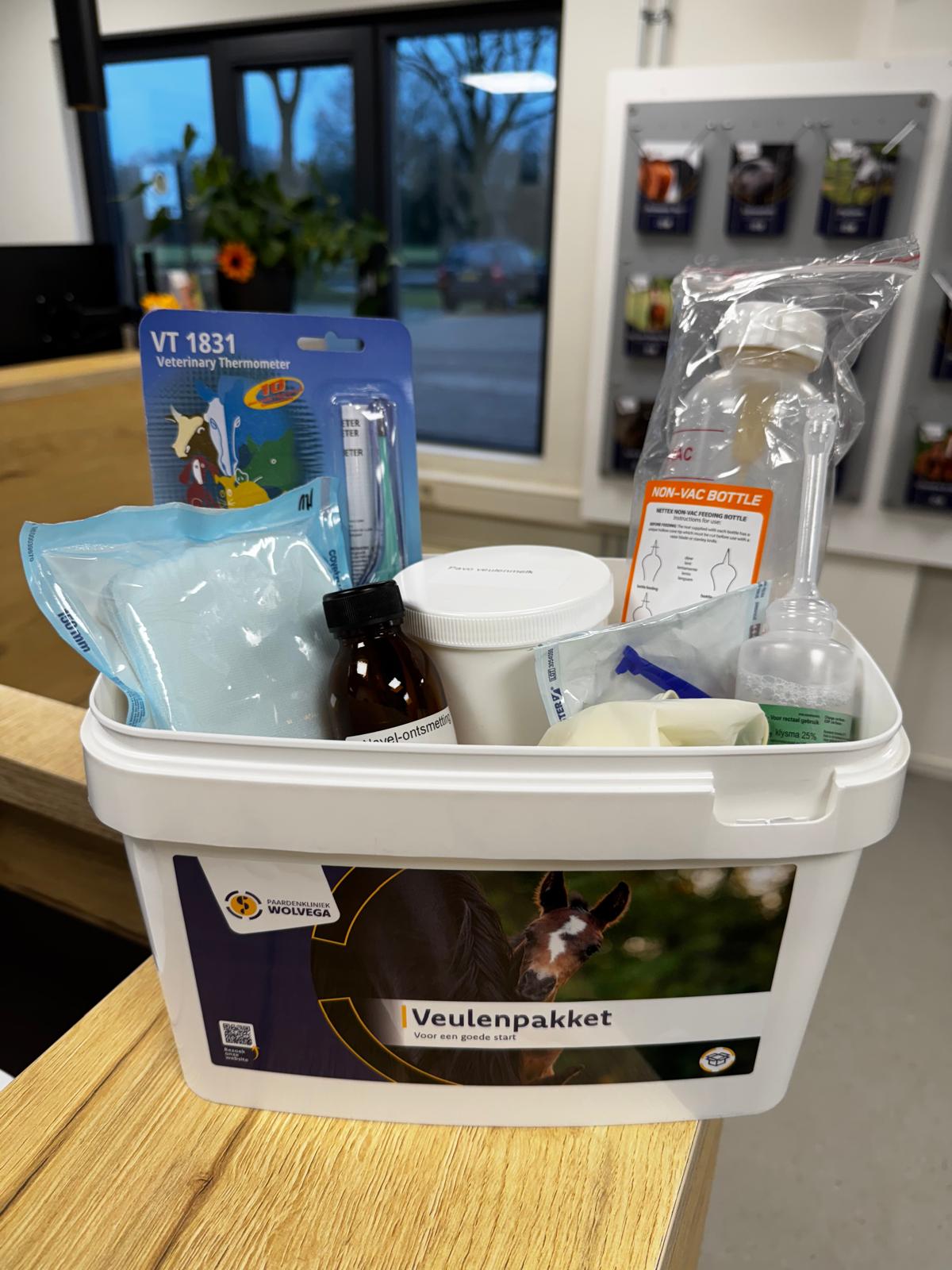 Met dit veulenpakket heb je alles in huis om de geboorte en de eerste momenten van het veulen daarna, goed te begeleiden.